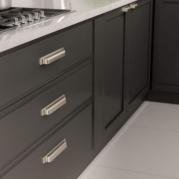 • Classic brushed nickel pull for kitchens, bathrooms, and more