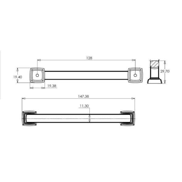 • Polished nickel finish pull, 5-1/16 in. (128 mm) center-to-center