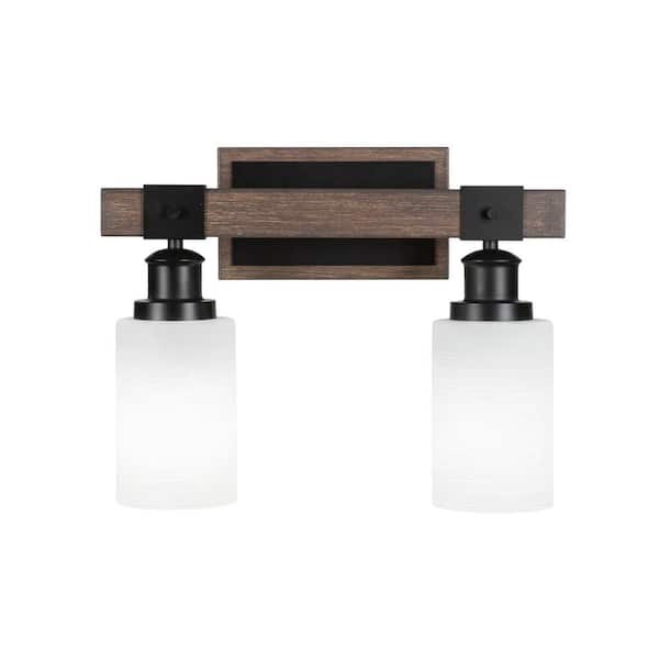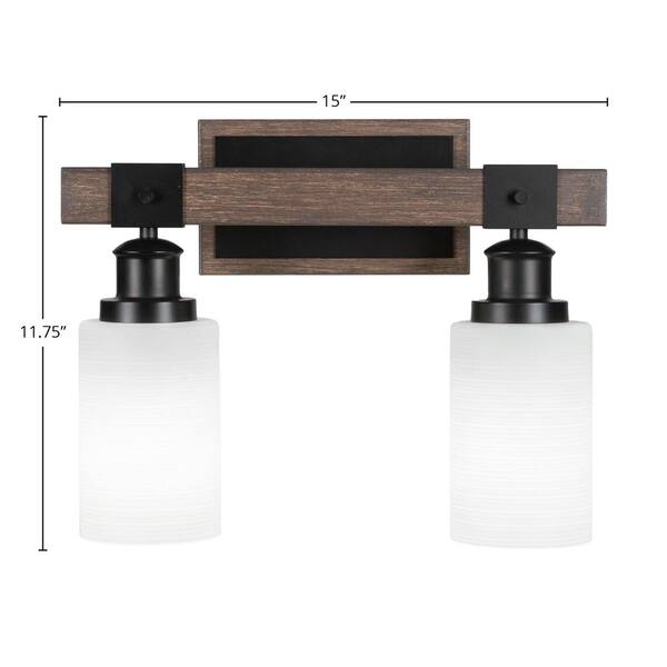 Richmond 15 in. 2-Light Vanity Light Black/Painted Wood-look Metal with 4 in. White Matrix Glass Shade no bulbs included