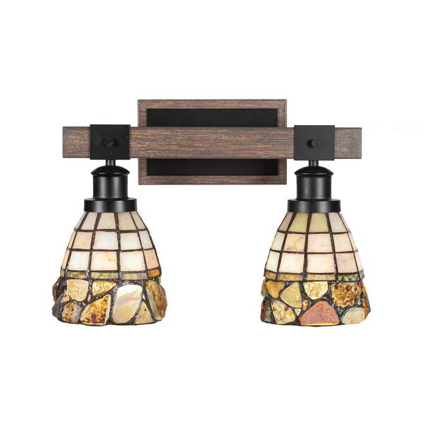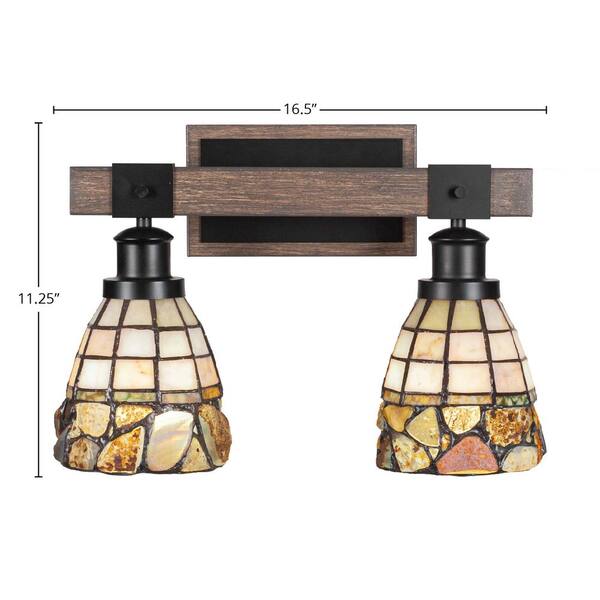 Richmond 16.5 in. 2-Light Vanity Light Black/Painted Wood-look Metal with 7 in. Art Glass Shades no bulbs included