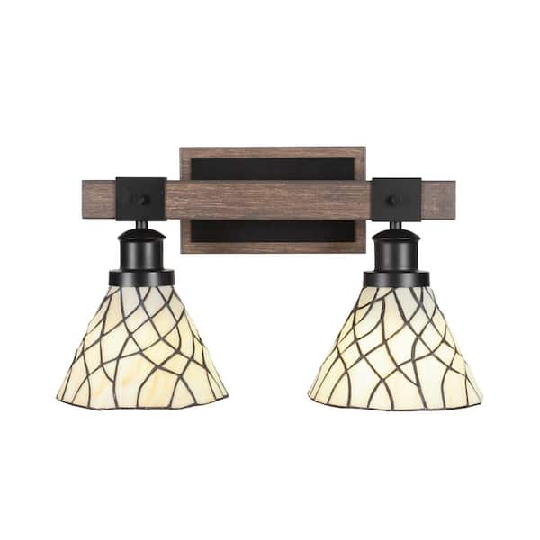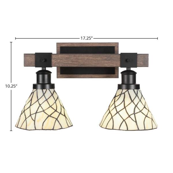 Richmond 17.25 in. 2-Light Vanity Light Black/Painted Wood-look Metal with 7 in. Art Glass Shades no bulbs included