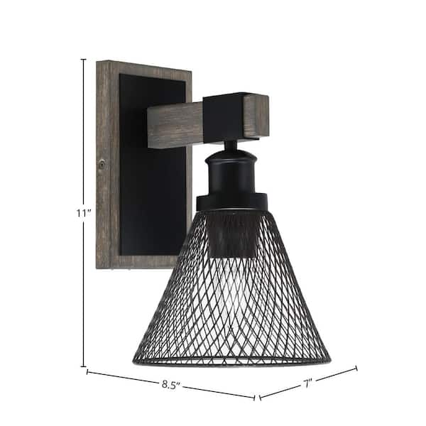 Richmond 7 in. 1-Light Matte Black and Painted Distressed Wood-look Metal Wall Sconce with Standard Shade