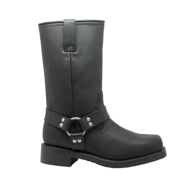 Men's Wide 10 Black Full-Grain Oiled Leather Waterproof Harness Boot