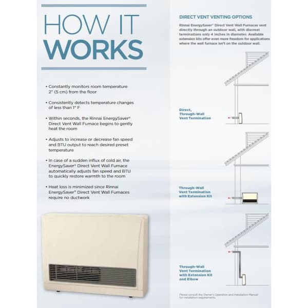 EnergySaver 36,500 BTU Direct Vented Wall Furnace Propane Gas Heater with Automatic Shutoff and Programmable Thermostat