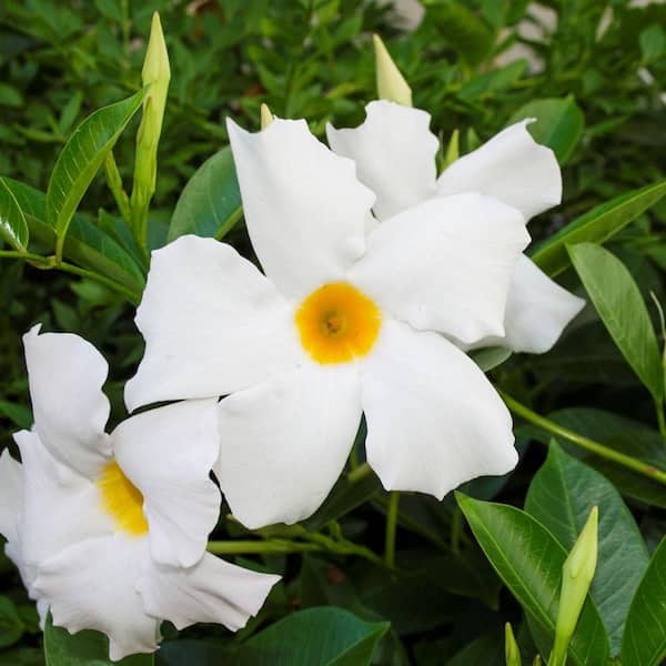 2.5 Gal. (#12) Patio Pot Dipladenia Flowering Annual Shrub White Blooms