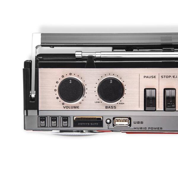 Portable Radio and Cassette Boombox with Bluetooth in Red