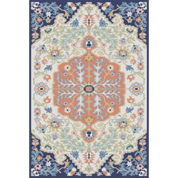 • Blue, pink and cream area rug with 1/2 inch thickness