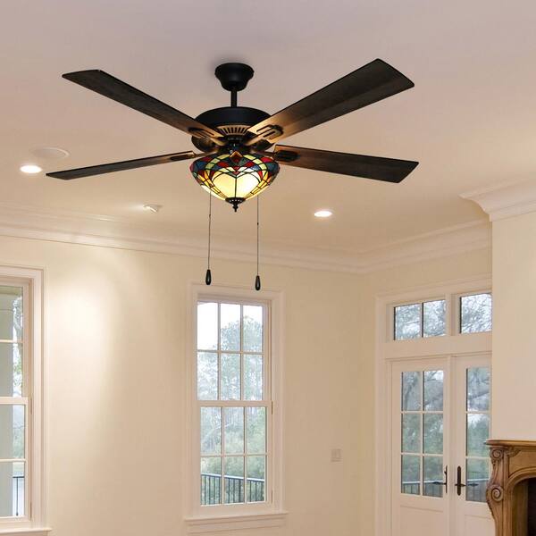 Braxton Mission 52 in. Stained Glass LED Ceiling Fan With Light
