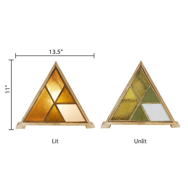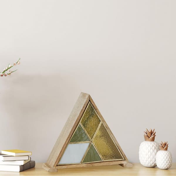 Chelsea 11 in. Wood Triangle Accent Lamp with Amber, Green, and White Glass and Wood Shade