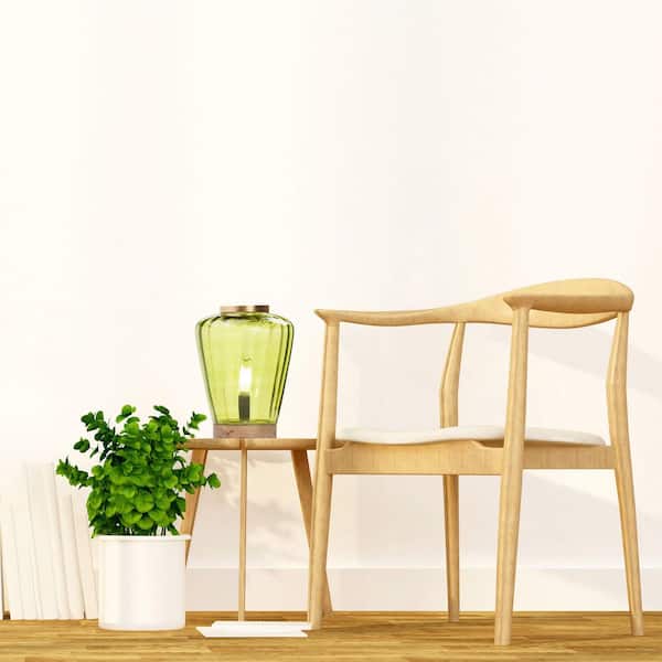 Eleanor 10.5 in. Mango Wood Block Base Accent Lamp with Chartreuse Green Glass Shade