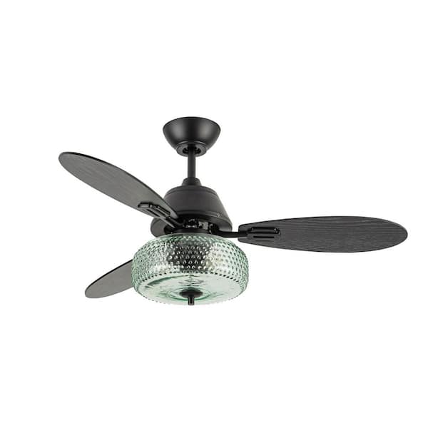 Eloise 42 in. 2-Light Indoor Black Ceiling Fan with Green Glass Globe Shade and Remote Control