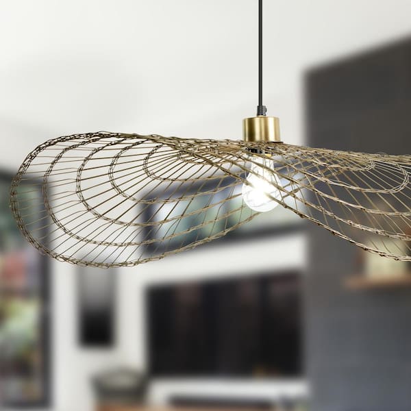 Emma 40-Watt 1-Light Brass Cage Pendant Light with Metal Shade