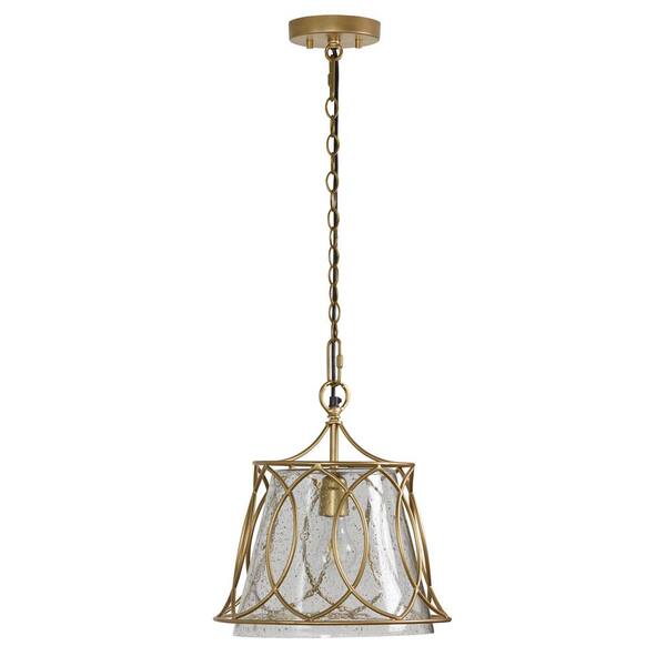 Ravel 13.25 in. 1-Light Gold Shaded Pendant Light with Metal and Clear Textured Glass Shade