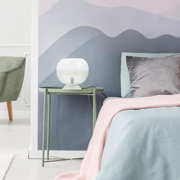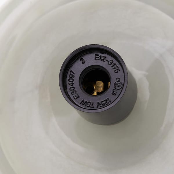 Samantha 13 in. White Stacked Base Table Lamp with Green/White Glass Globe Shade