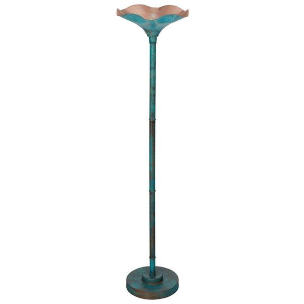 Tabitha 62.5 in. Faux Blue Patina and Copper Metal Torchiere Floor Lamp with Metal Shade