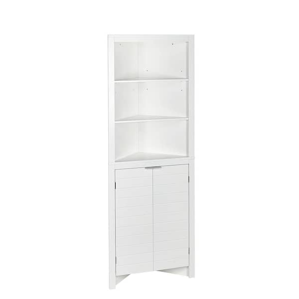Madison 23.31 in. W x 16.88 in. L x 63.88 in. H White Linen Cabinet Corner Bathroom Storage Cabinet with Open Shelves