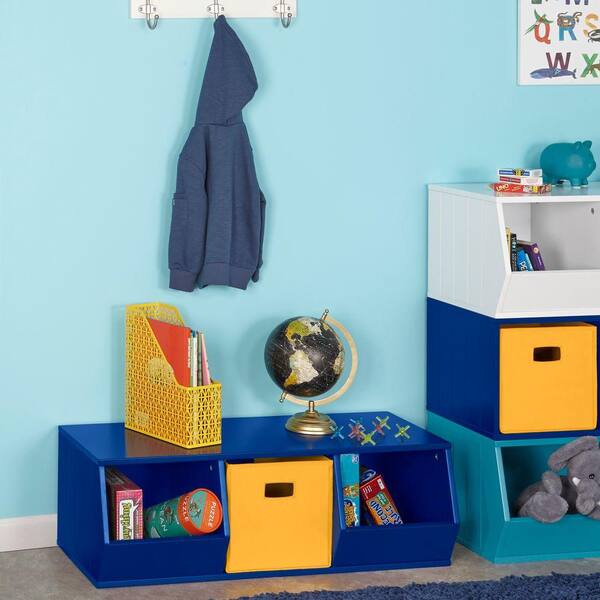 36 in. x 12 in. Stackable 2-Veggie Bins and 1-Cube Storage Organizer in Navy Blue
