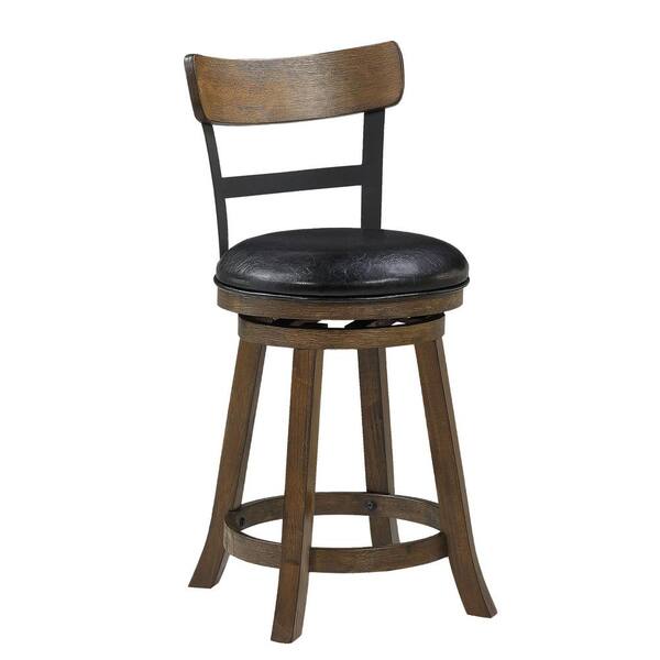 Riverside 36.5 in. Walnut High Back Wood and Metal 24 in. Bar Stool