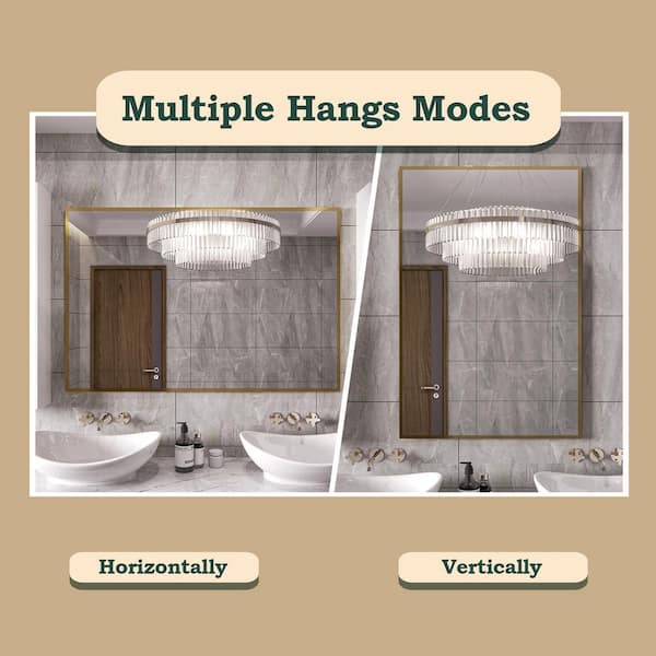 60 in. W x 40 in. H Rectangle Aluminum Framed Wall Bathroom Vanity Mirror in Brushed Gold