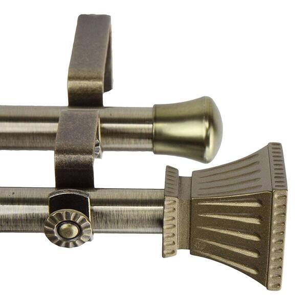 120 in. - 170 in. Telescoping Double Curtain Rod in Antique Brass with Trumpet Finial