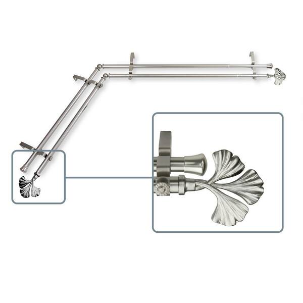 13/16" Dia Adjustable 120" to 170" Double Corner Window Curtain Rod in Satin Nickel with Fortune Finials