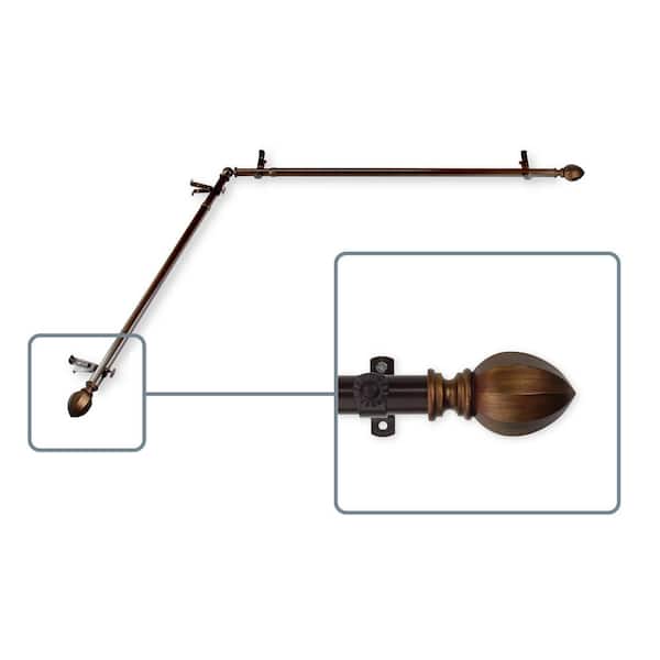 13/16" Dia Adjustable 120" to 170" Single Corner Window Curtain Rod in Cocoa with Garnet Finials