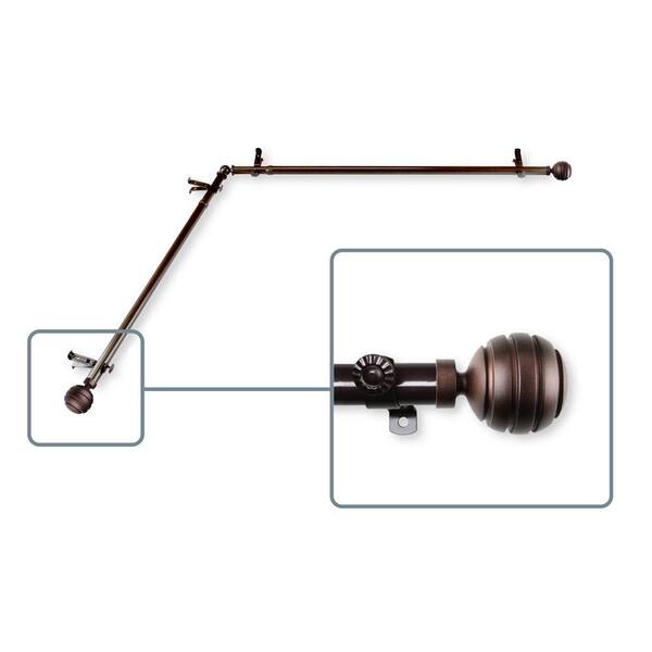 13/16" Dia Adjustable 120" to 170" Single Corner Window Curtain Rod in Cocoa with Poise Finials