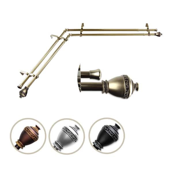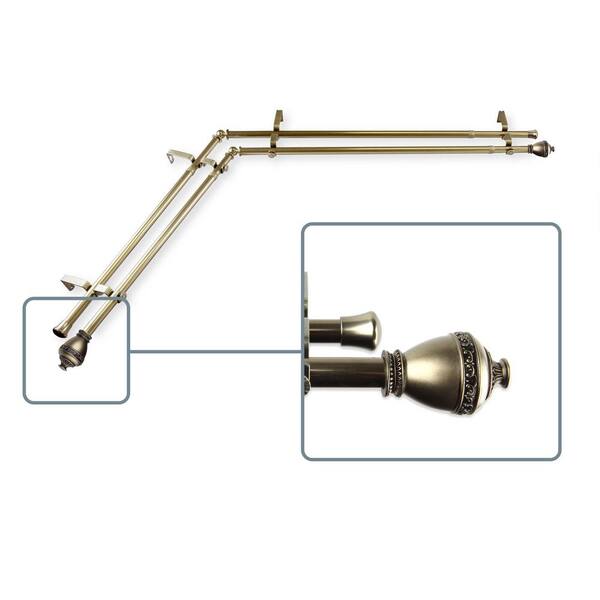 13/16" Dia Adjustable 28" to 48" Double Corner Window Curtain Rod in Antique Brass with Amelie Finials