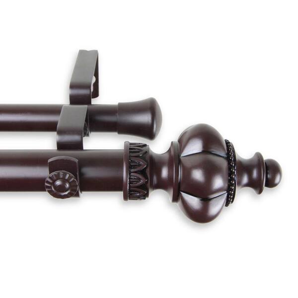 48 in. - 84 in. Telescoping 1 in. Double Curtain Rod Kit in Mahogany with Terra Finial