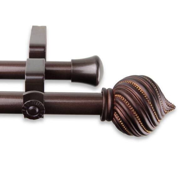 66 in. - 120 in. Telescoping Double Curtain Rod Kit in Cocoa with Bisque Finial
