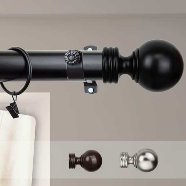 Sphera 11 FT Non-Adjustable Custom Cut Single Curtain Rod 1.5 inch Diameter in Black with Finial