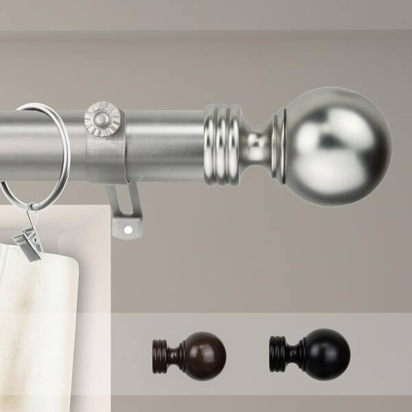 Sphera 20 FT Non-Adjustable Custom Cut Single Curtain Rod 1.5 inch Diameter in Satin Nickel with Finial
