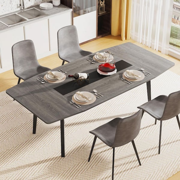 Roesler Farmhouse Gray Engineered Wood 70.8 in. 4 Legs Dining Table Seats 6