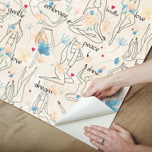 28.29 sq. ft. Yoga Goddesses Blue Peel and Stick Wallpaper