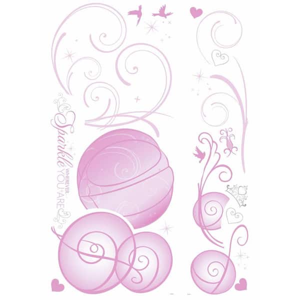 5 in. x 19 in. Disney Princess Scroll Carriage Peel and Stick Giant Wall Decals with Glitter-DISCONTINUED