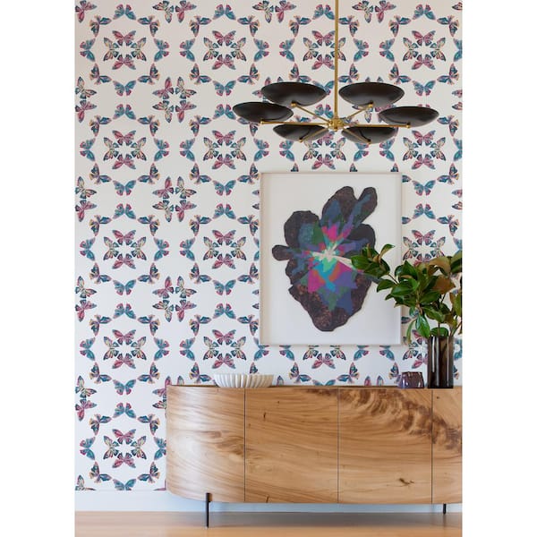 EttaVee Pink and Blue Papillon Vinyl Peel and Stick Wallpaper