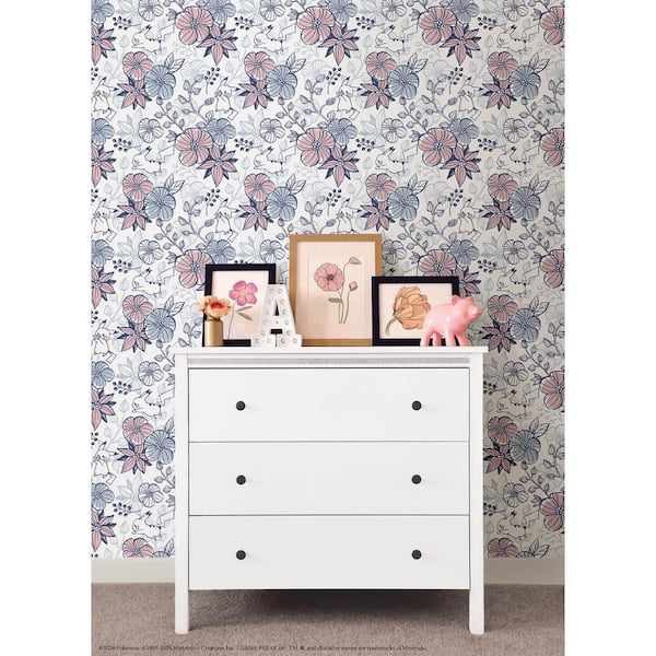 Multi-Colored Pokémon Pikachu Floral Peel and Stick Wallpaper