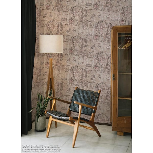 Warner Bros Brown Lord of the Rings Parchment Middle Earth Map Peel and Stick Wallpaper