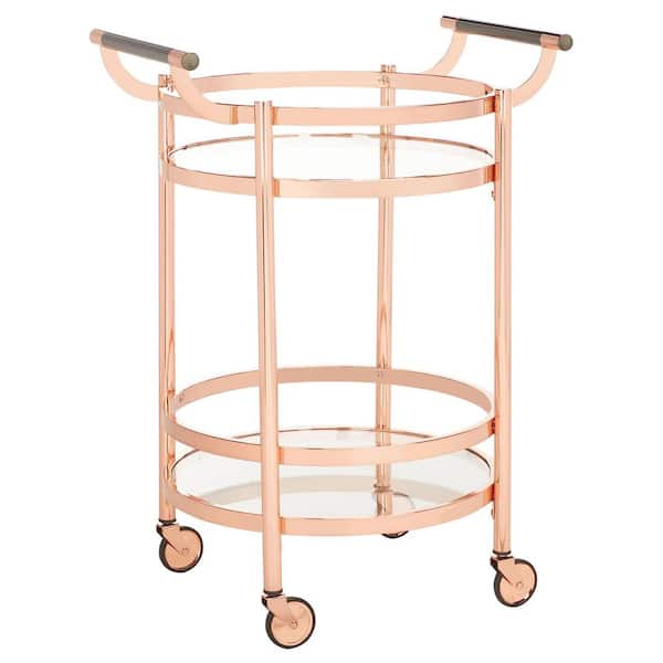 Rose Gold Nickel Trim Handle/Tempered Glass 2-Tier Round Bar Cart Outdoor Tables Serving Bars