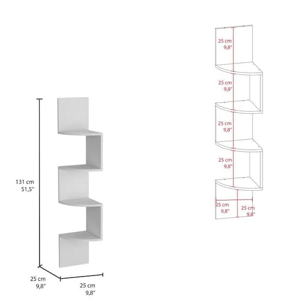 Rosset Corner Shelf 9.8 in. W x 9.8 in. D White Decorative Wall Shelf with Modern Full-Wall Design and Multiple Shelving
