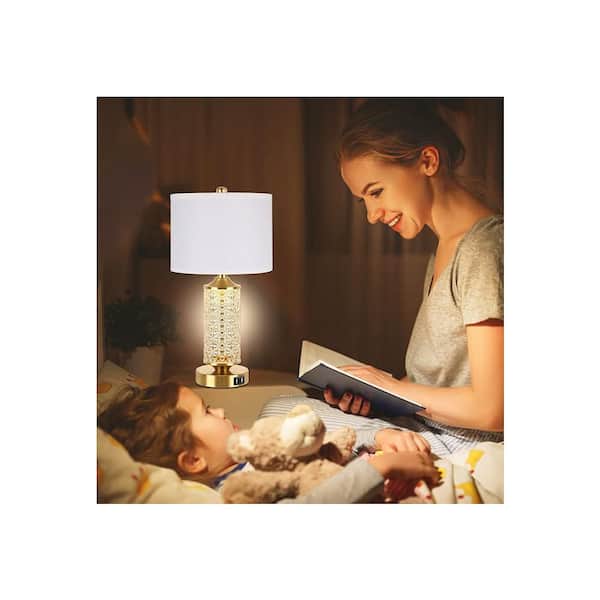 22.5'' Gold Table Lamps with USB Set of 2, Modern Glass Bedside Lamp with LED Night Light for Bedroom Living Room Office