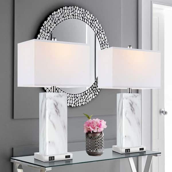 22.5''Touch Control Table Lamps Set of 2, Modern White Resin Bedside Lamp with 2 USB Ports 1 AC Outlet, 3-Way Dimmable