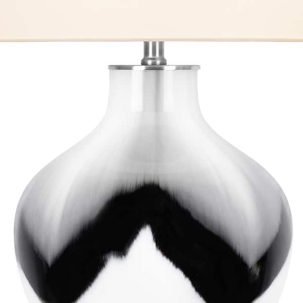 25 in. Modern Grey and White Table Lamp, Glass Bedside Lamp with Fabric Shade for Living Room Bedroom Decor