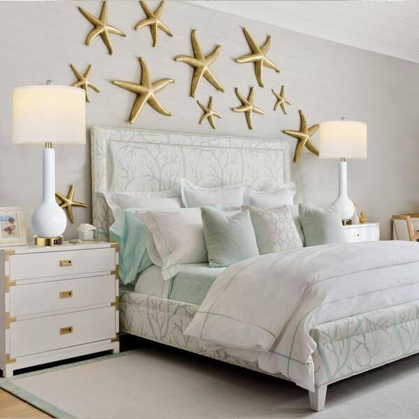 27.5 in. Modern Accent White Bedside Lamp for Bedroom with 3-Color Temperature LED Bulbs. Ceramic Table Lamp Set of 2.