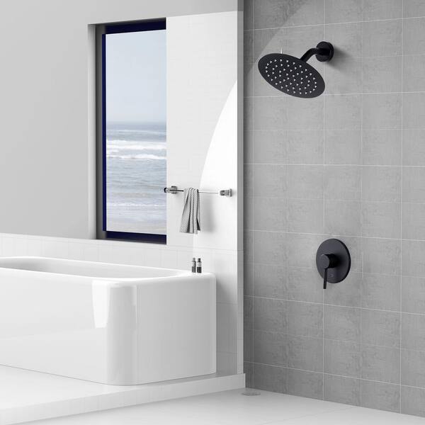 Round 2-Spray Patterns with 1.6 GPM 8 in. Wall Mount Rain Fixed Shower Head in Matte Black