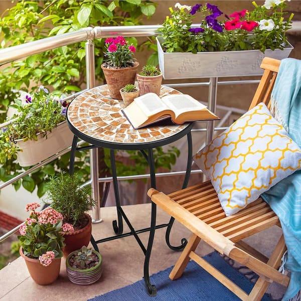 Round Metal Outdoor Side Table with Ceramic Tile Top
