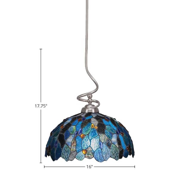 Royale 100-Watt 1-Light Brushed Nickel Shaded Pendant Light with 16 in. Blue Mosaic Art Glass Shade, No Bulb Included