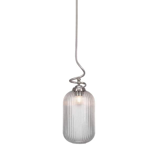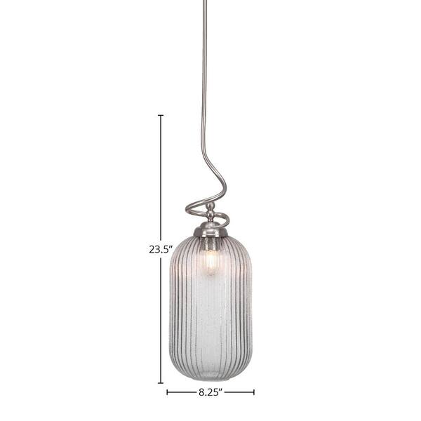 Royale 100-Watt 1-Light Brushed Nickel Shaded Pendant Light with 8.25 in. Bubble Ribbed Glass Shade, No Bulb Included