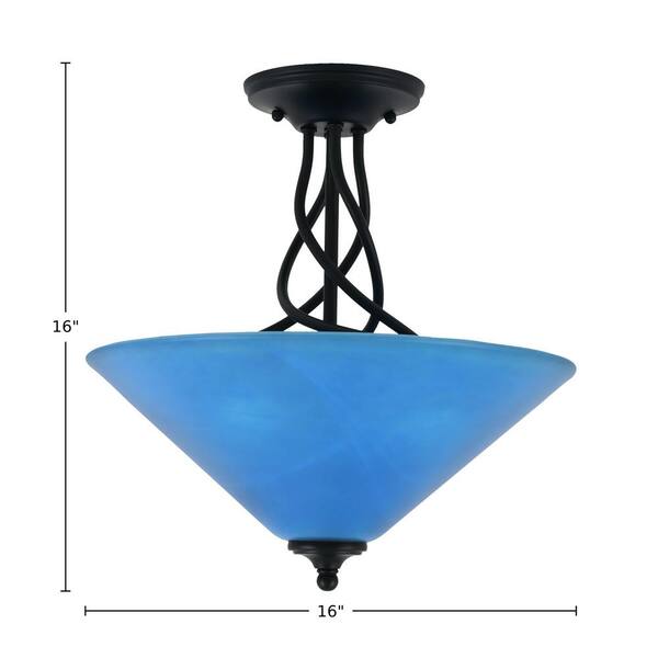 Royale 16 in. 3-Light Matte Black Contemporary Semi-Flush Mount with 16 in. Blue Italian Glass Shade No Bulbs Included