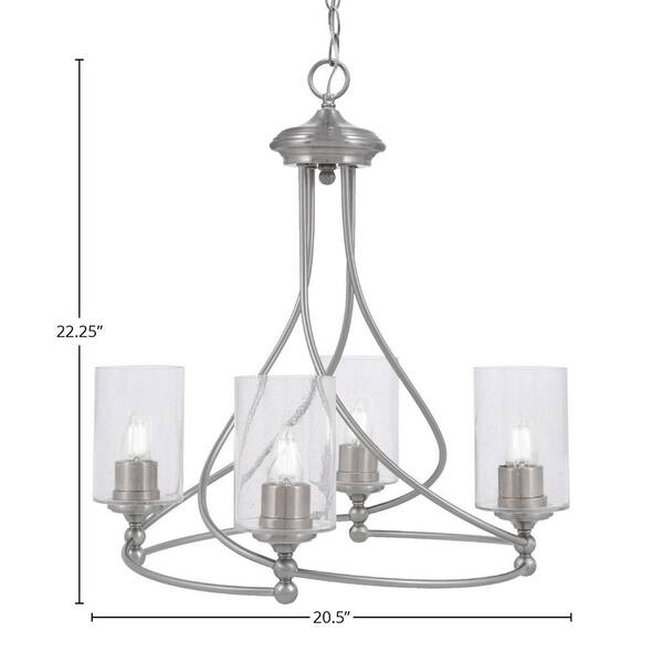 Royale 4-Light Brushed Nickel Chandelier, Round Chandelier with 4 in. Clear Bubble Glass Shades, No bulbs included